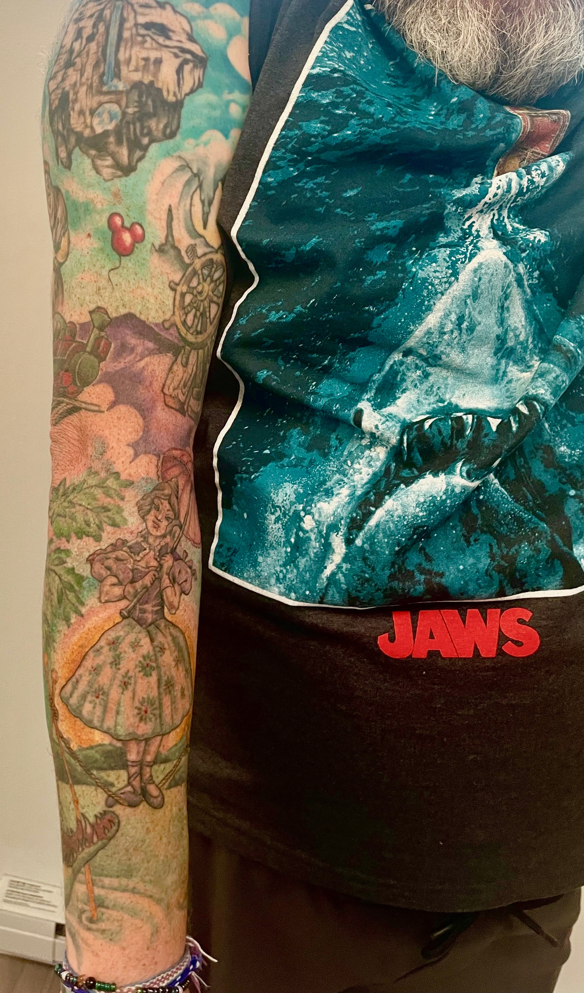 Yesterday I drove out to Sidney (by the Sea!) to meet up with my tattoo artist, who moved her studio from Downtown to Sidney a few years ago. It's been maybe five or six years (just looked and it was seven) since I last got any work done on this thing. So it's been a long time coming.