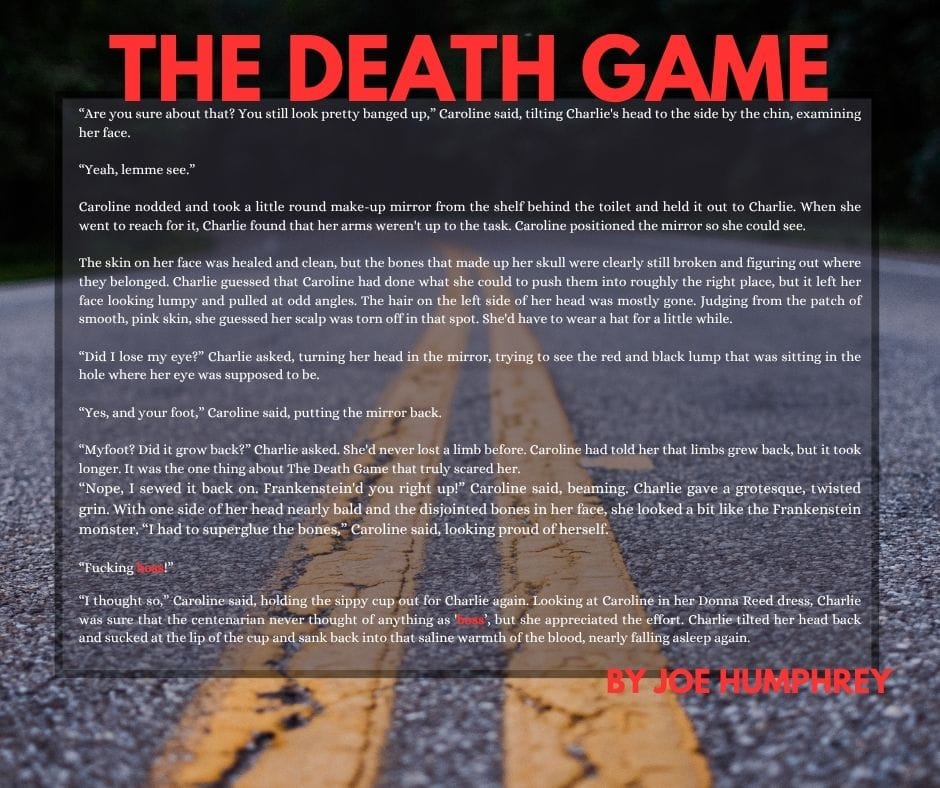 “My foot? Did it grow back?” Charlie asked. She'd never lost a limb before. Caroline had told her that limbs grew back, but it took longer. It was the one thing about The Death Game that truly scared her.